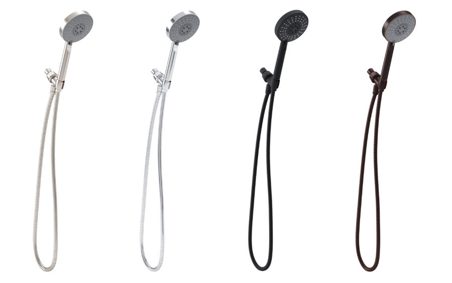This five-mode showerhead and bracket provides the functionality of a showerhead with the convenience and flexibility of a hand shower.