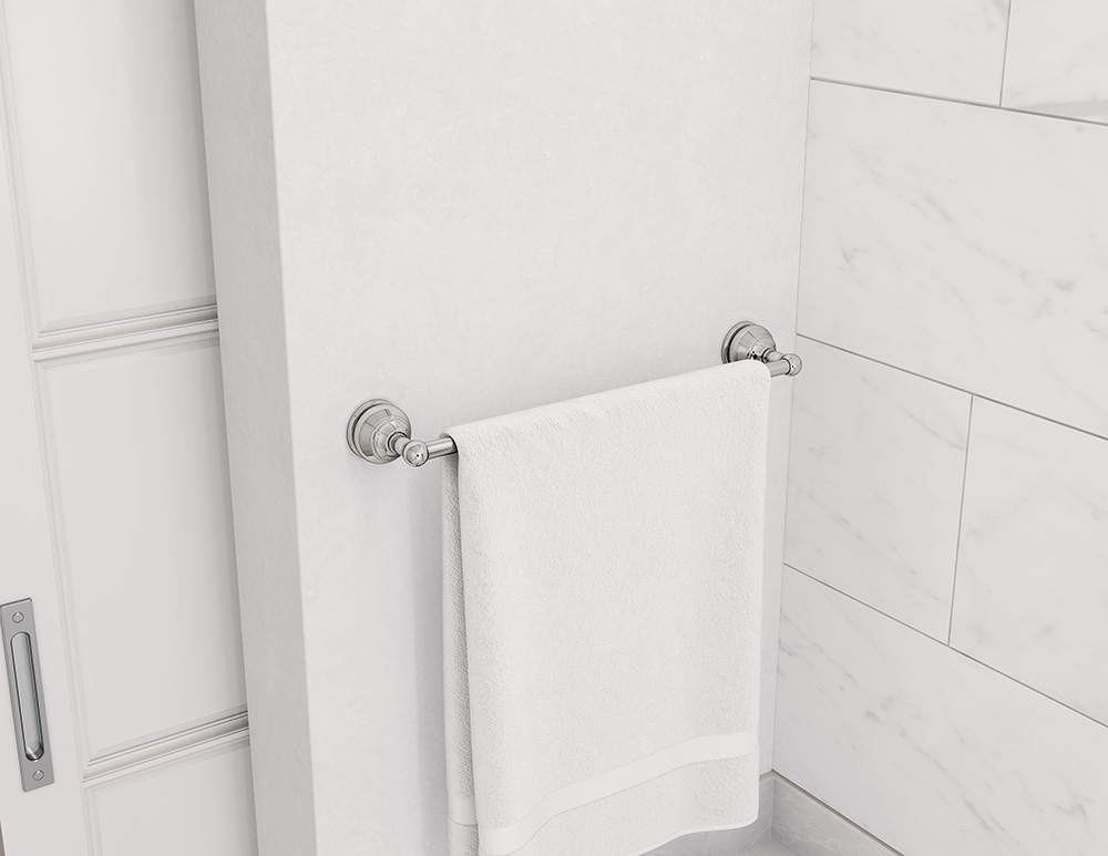Traditional yet transitional, the Symmons Allura Collection blends classic detailing with modern accents and finishes. The solid construction and style give a distinct presence in any traditional bathroom.