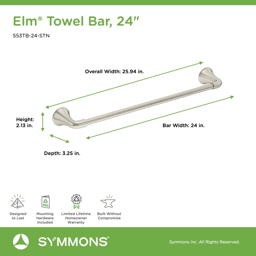 The sleek form and simple lines of the Symmons Elm Collection can be a subtle addition, or choose a bold finish to make it the focal point of any bathroom design.