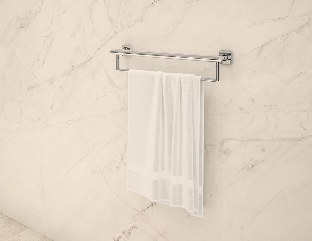 The bold angular design of the Duro Collection reflects the concept of form and function as one ideal. The precise rectangular shapes present a clean, minimalist feel for any contemporary bathroom.