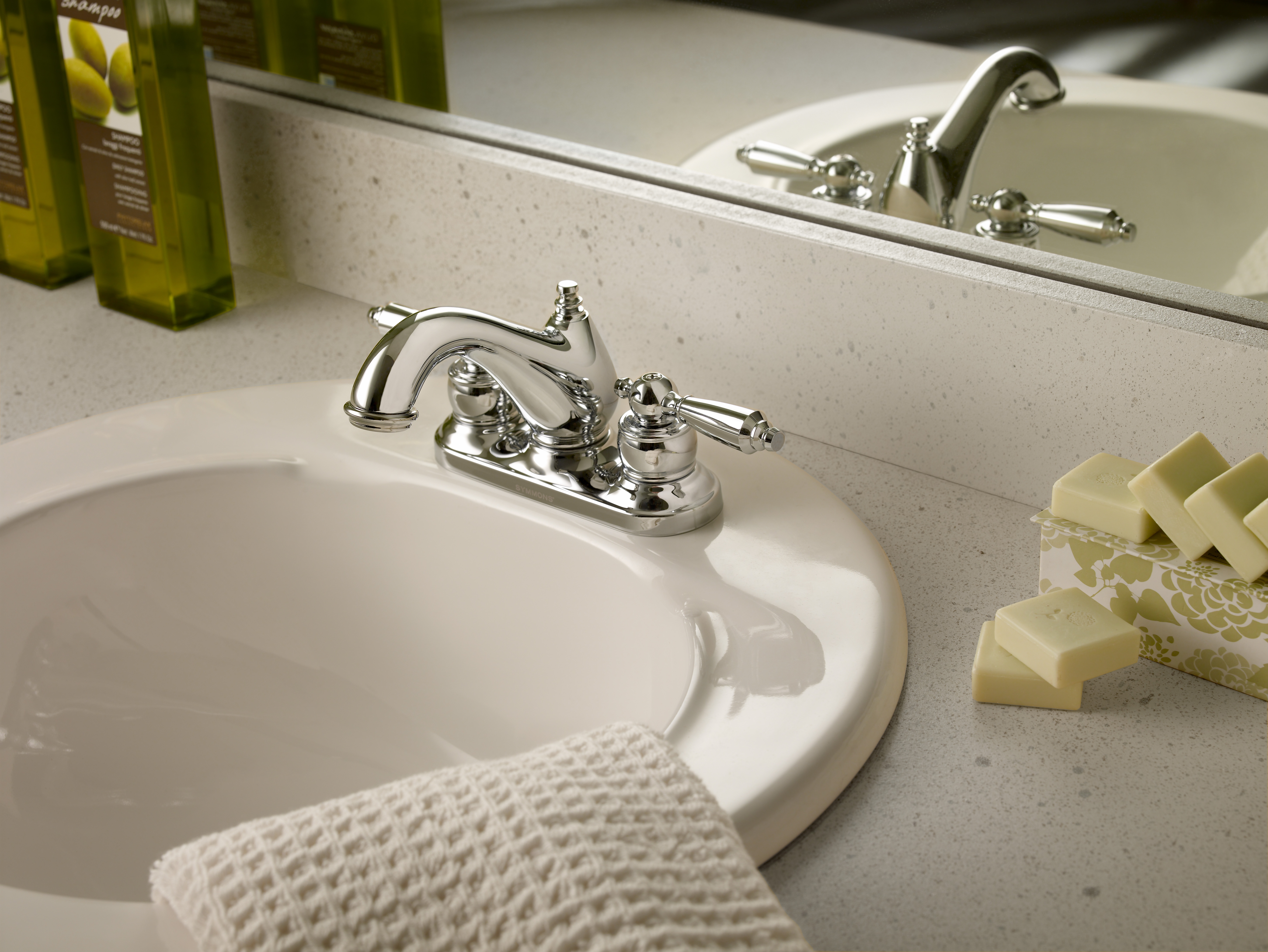 Traditional yet transitional, the Symmons Allura Collection blends classic detailing with modern accents and finishes. The solid construction and style give a distinct presence in any traditional bathroom.