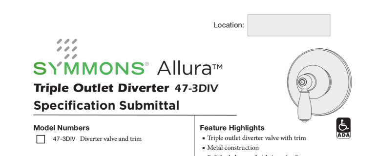 Traditional yet transitional, the Symmons Allura Collection blends classic detailing with modern accents and finishes. The solid construction and style give a distinct presence in any traditional bathroom.