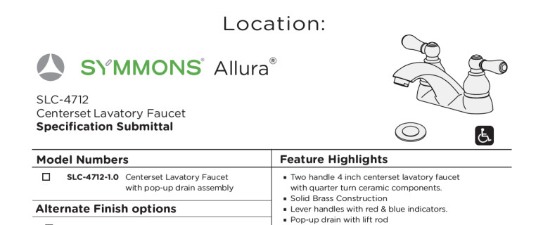 Traditional yet transitional, the Symmons Allura Collection blends classic detailing with modern accents and finishes. The solid construction and style give a distinct presence in any traditional bathroom.