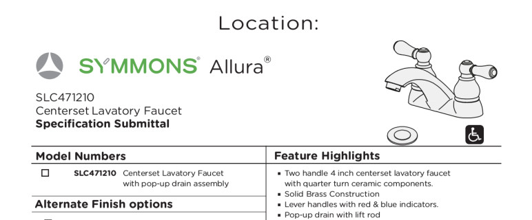 Traditional yet transitional, the Symmons Allura Collection blends classic detailing with modern accents and finishes. The solid construction and style give a distinct presence in any traditional bathroom.