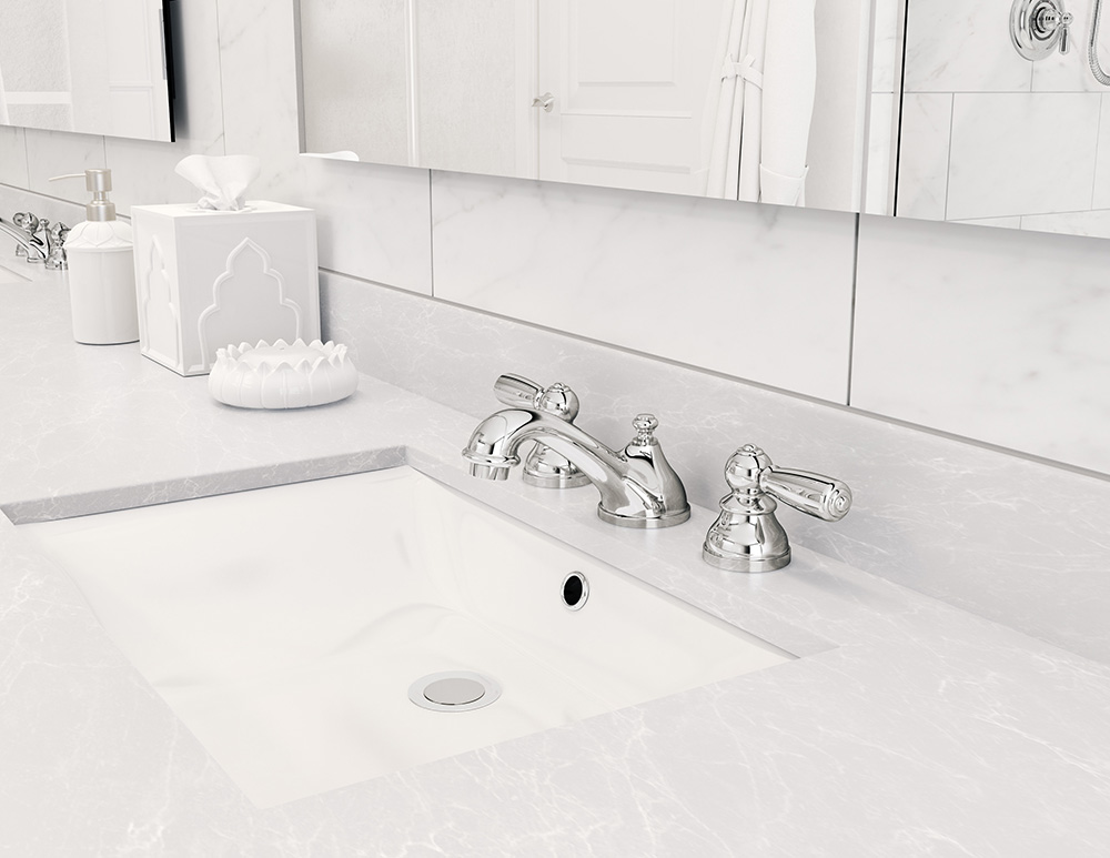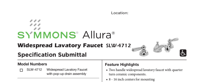 Traditional yet transitional, the Symmons Allura Collection blends classic detailing with modern accents and finishes. The solid construction and style give a distinct presence in any traditional bathroom.