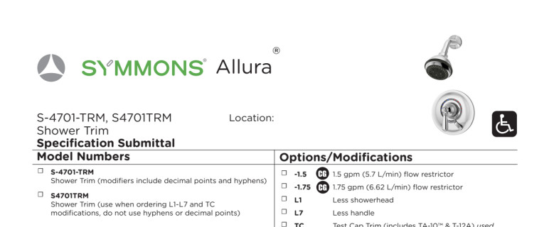 Traditional yet transitional, the Symmons Allura Collection blends classic detailing with modern accents and finishes. The solid construction and style give a distinct presence in any traditional bathroom.