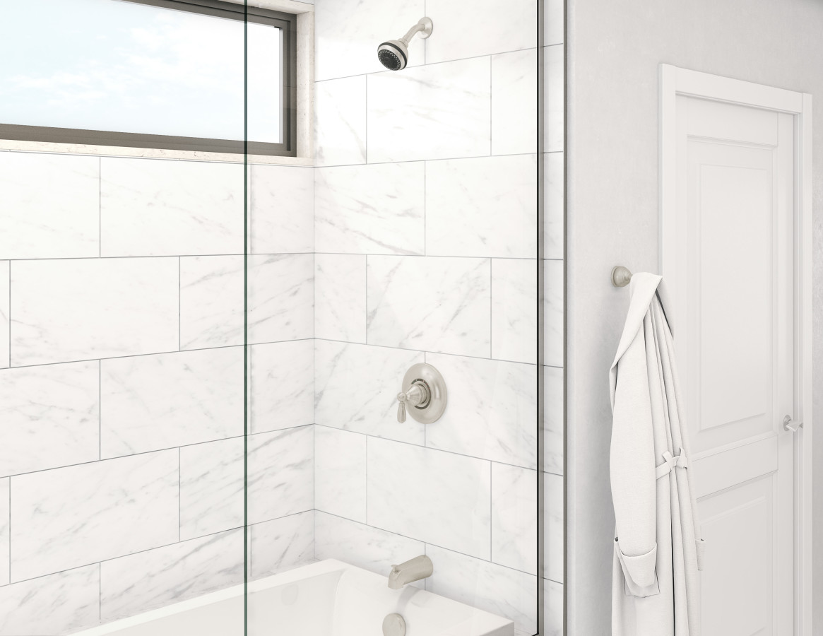 Traditional yet transitional, the Symmons Allura Collection blends classic detailing with modern accents and finishes. The solid construction and style give a distinct presence in any traditional bathroom.