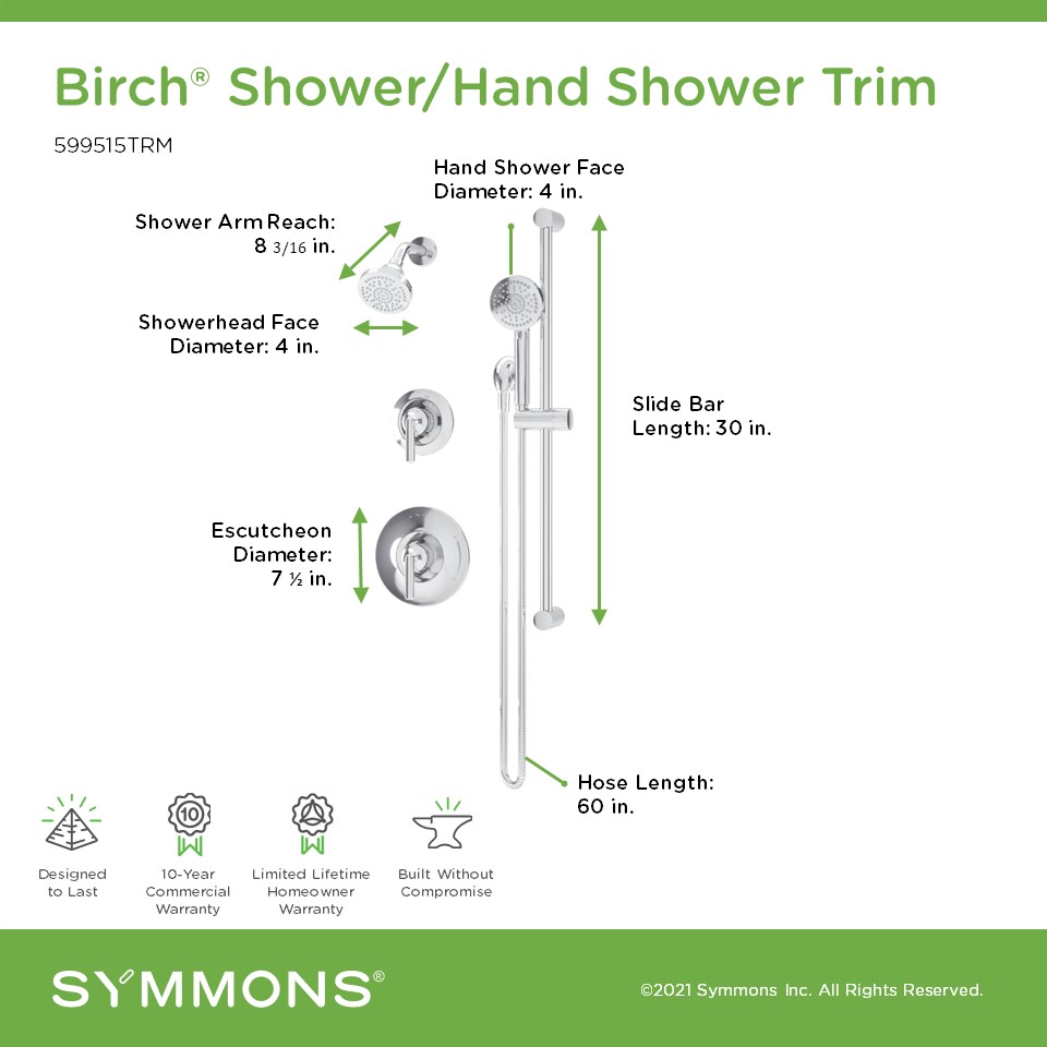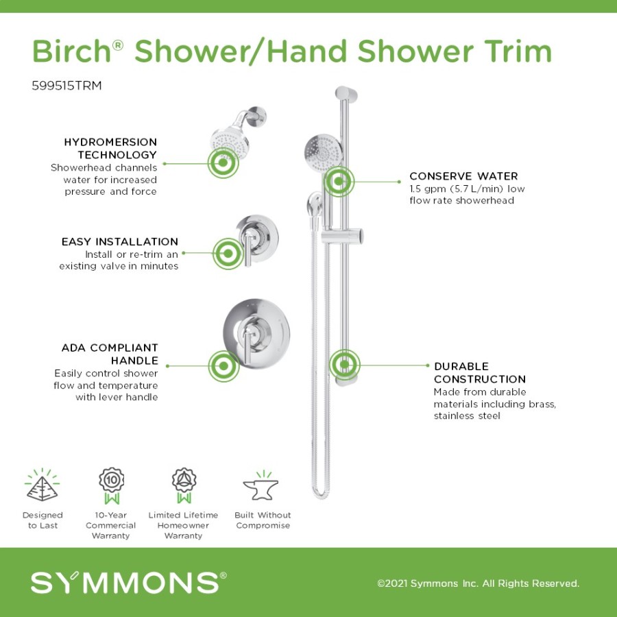 • 26 series Symmons Temptrol valve and 2DIVBODYSRT two-function diverter valve required (Not included)