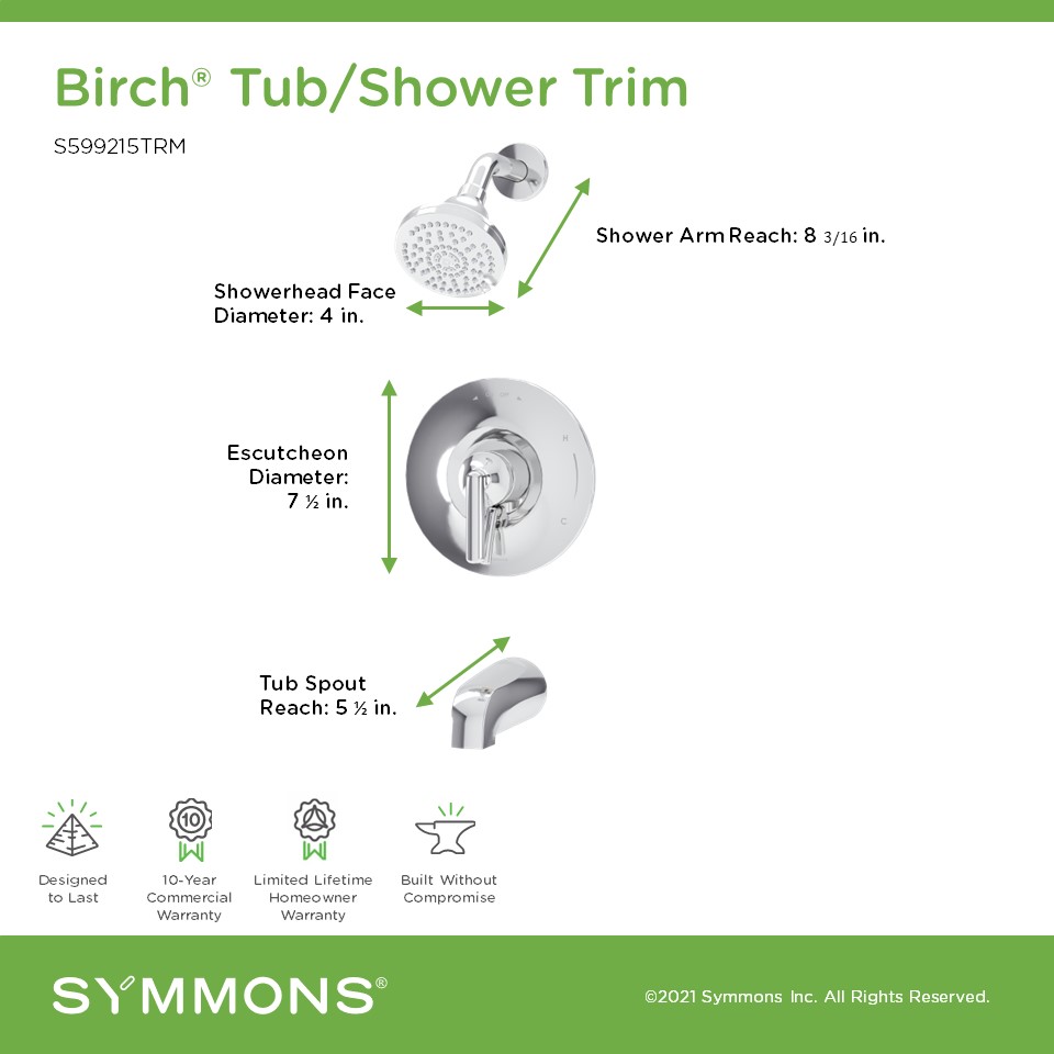 Birch Tub and Shower Trim with VersaFlex Integral Diverter