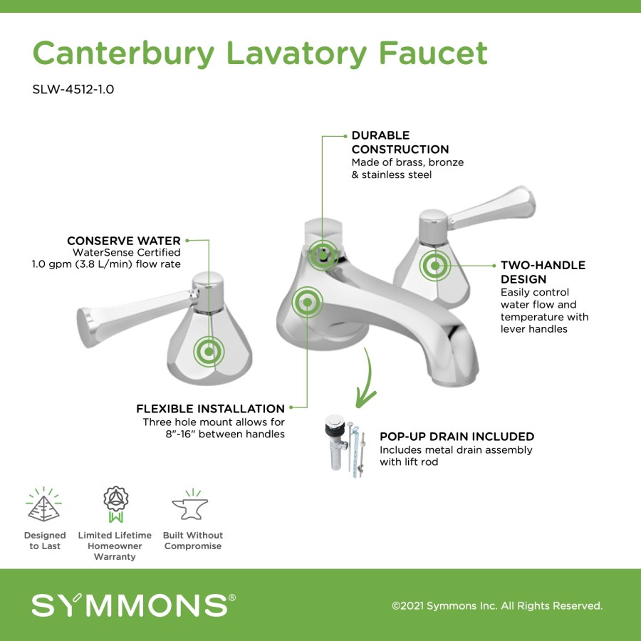 The Canterbury Collection from Symmons features elegant and stately lines reminiscent of the Gilded Age, yet its geometric shapes offer the versatility to be a transitional touch in any bath décor.