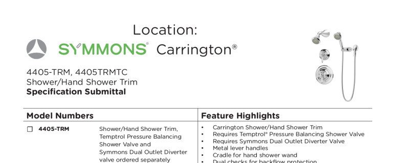 Created with historical elegance and sophistication in mind, the Symmons Carrington Collection highlights rich Victorian design in functional fixtures with modern amenities.
