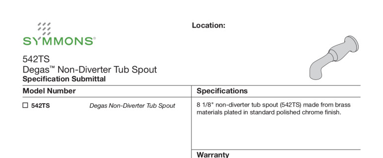 • Degas non-diverter tub spout