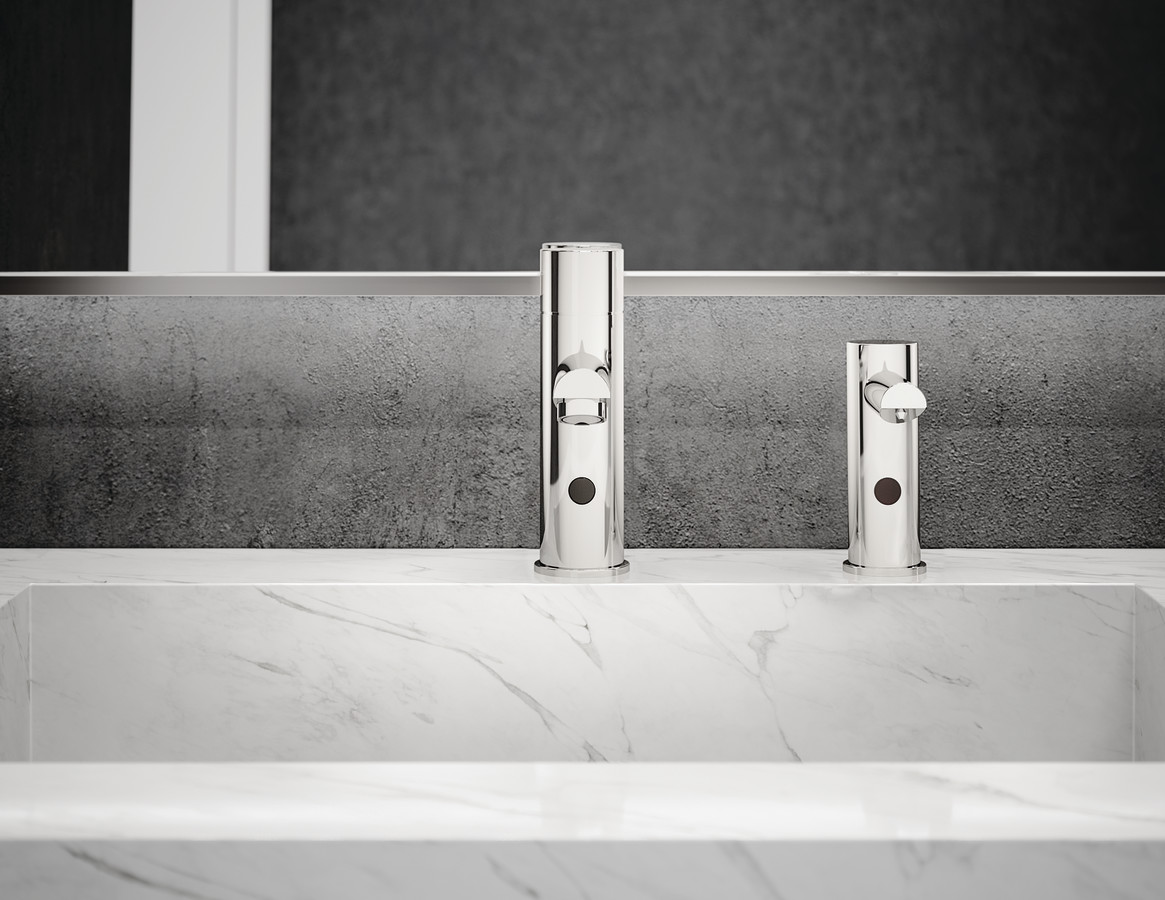 The Dia Collection from Symmons expresses Modern Industrial concepts in functional forms, with a cylindrical motif that brings Minimalism to any bath space.