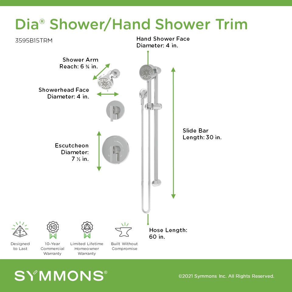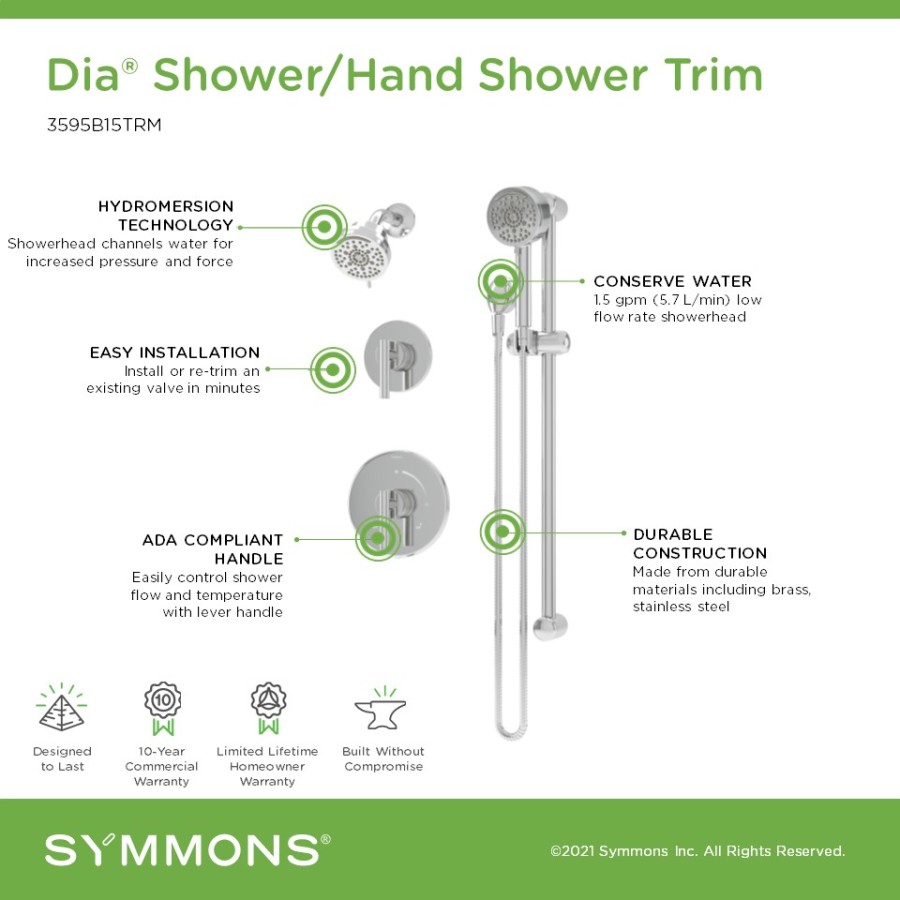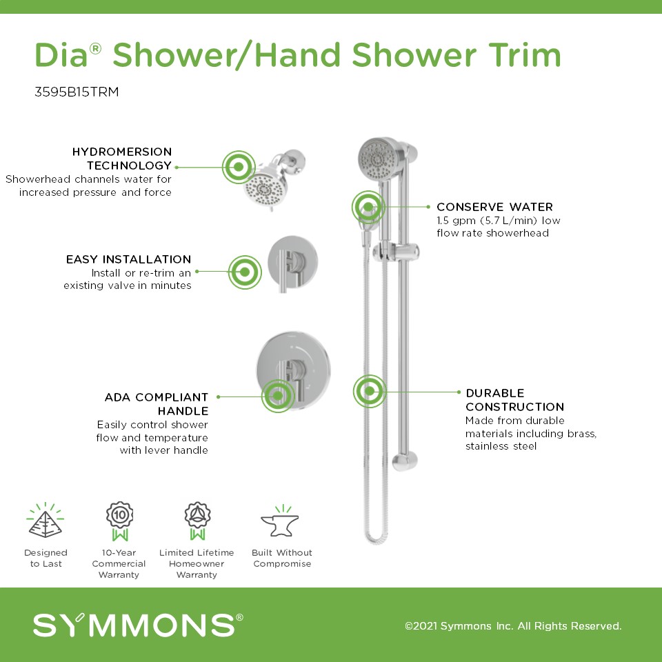 • 26 series Symmons Temptrol valve and 2DIVBODYSRT two-function diverter valve required (Not included)
