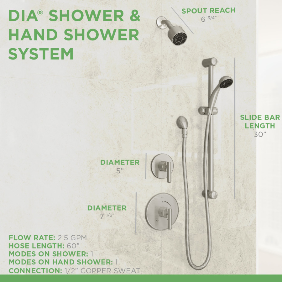 The Dia Collection from Symmons expresses Modern Industrial concepts in functional forms, with a cylindrical motif that brings Minimalism to any bath space.