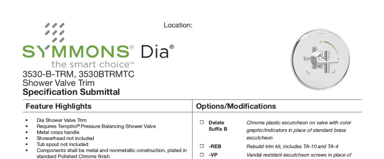 • Symmons product releases and company announcements