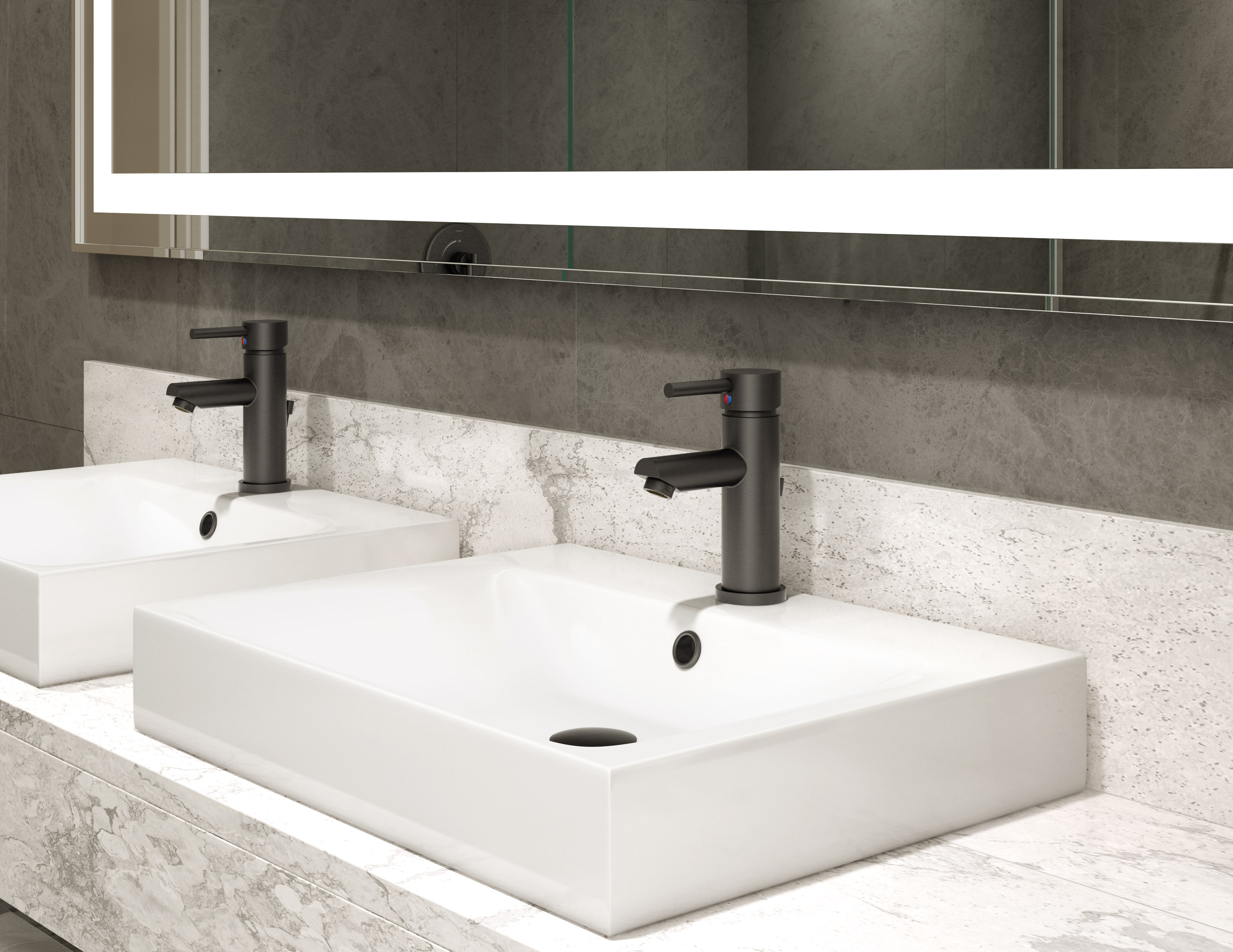 The Dia Collection from Symmons expresses Modern Industrial concepts in functional forms, with a cylindrical motif that brings Minimalism to any bath space.