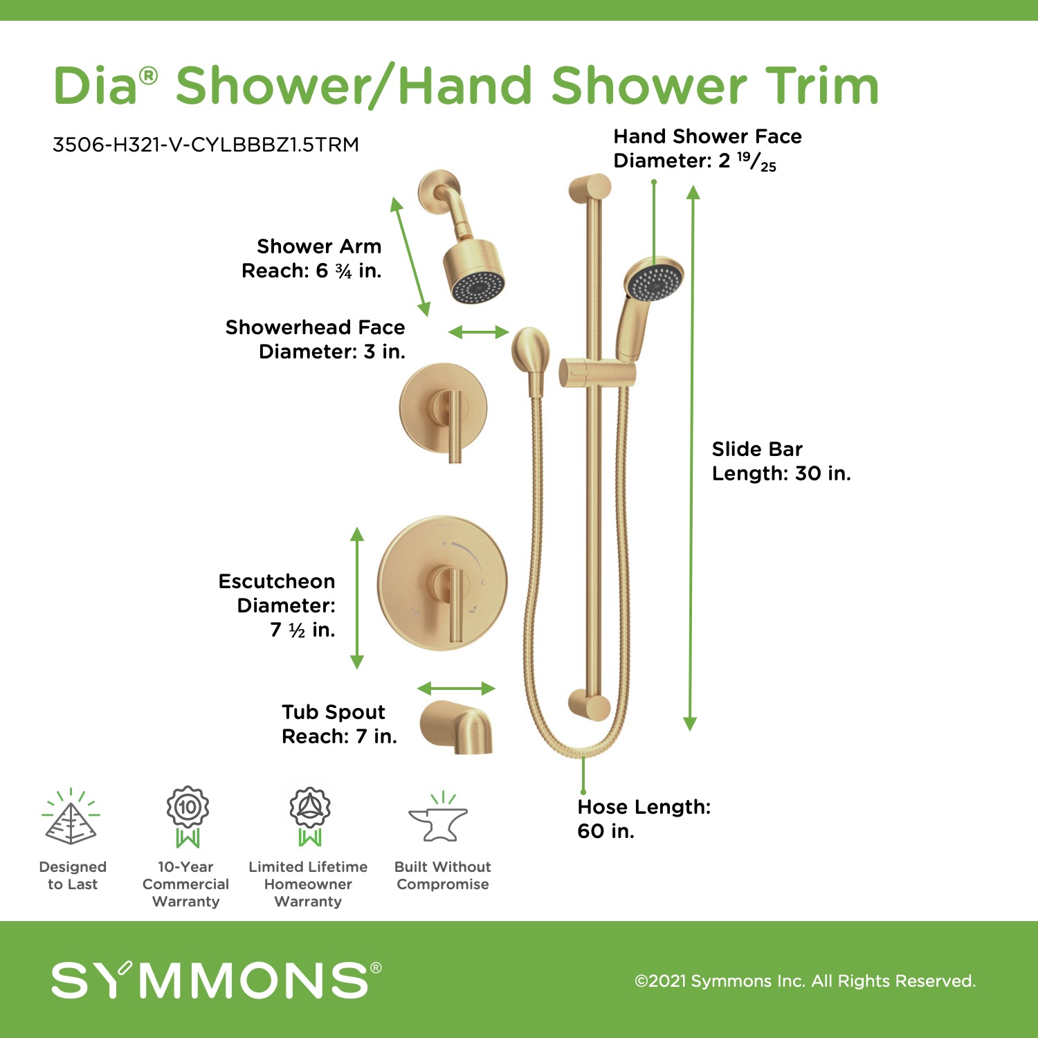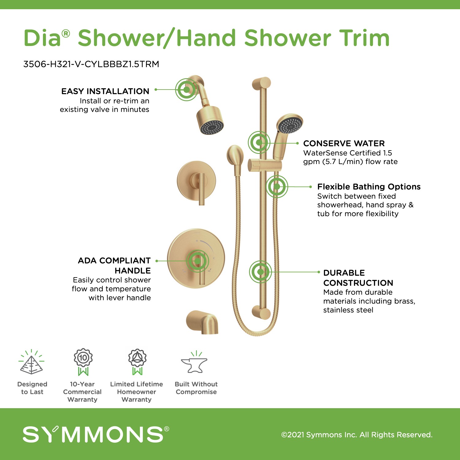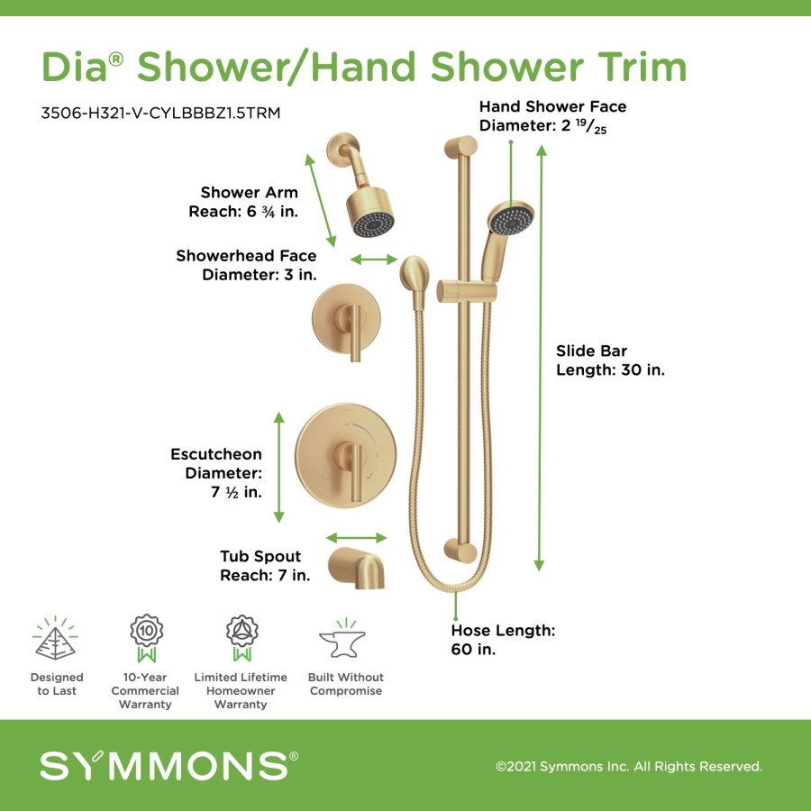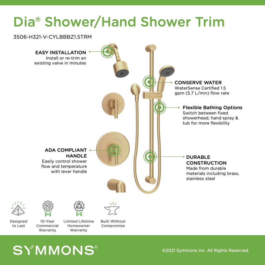 • Backed by Symmons' Limited Lifetime Homeowner Warranty/10 Year Commercial Warranty
