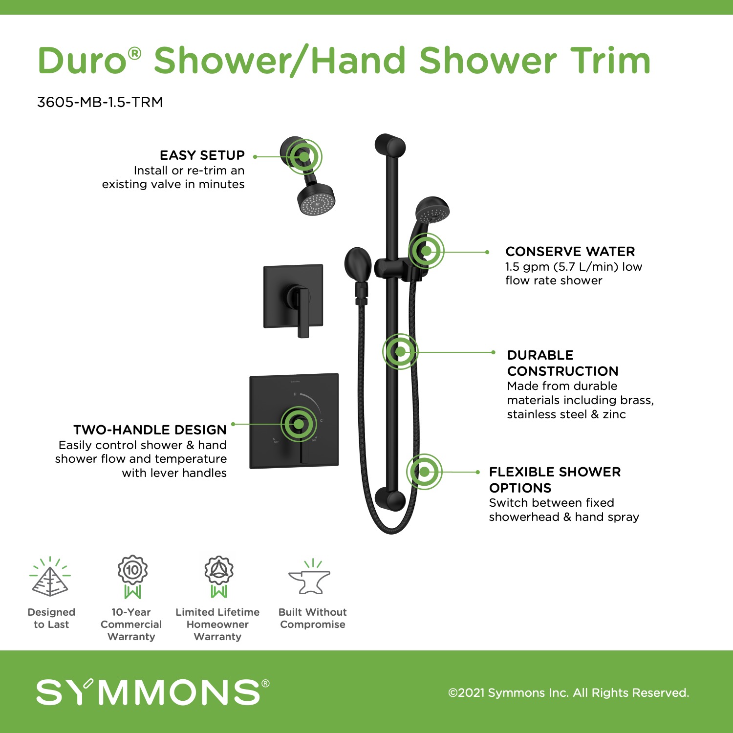 • Duro shower trim with hand shower and lever handle