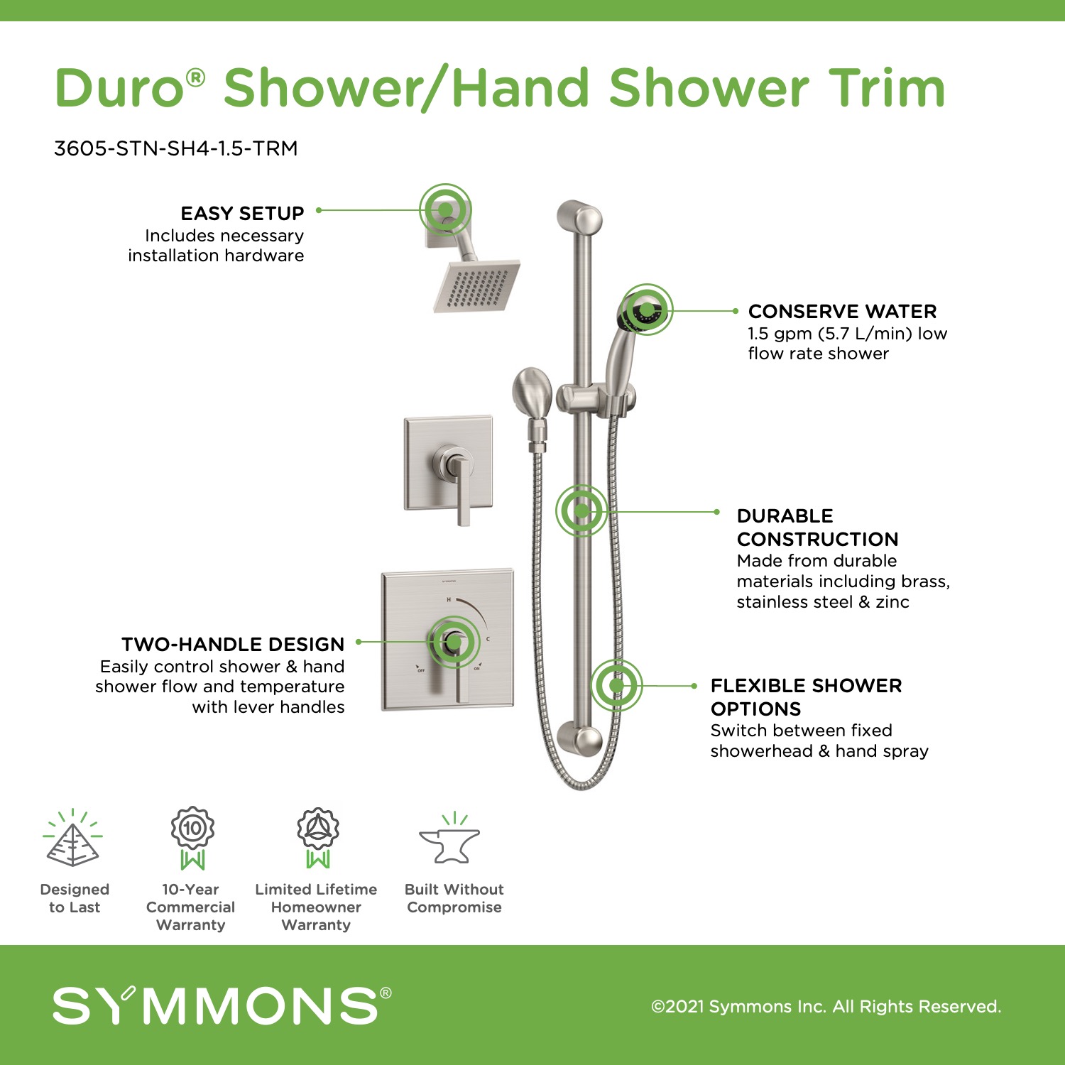 • Duro shower trim with hand shower and lever handle