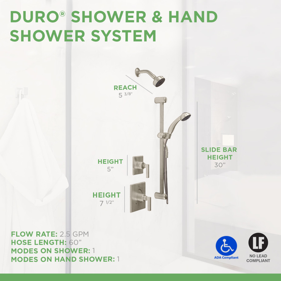 • Duro shower system with hand shower and lever handle