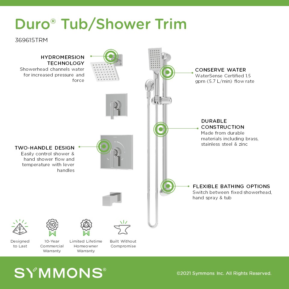 • 26 series Symmons Temptrol valve and 3DIVBODYSRT three-function diverter valve required (Not included)