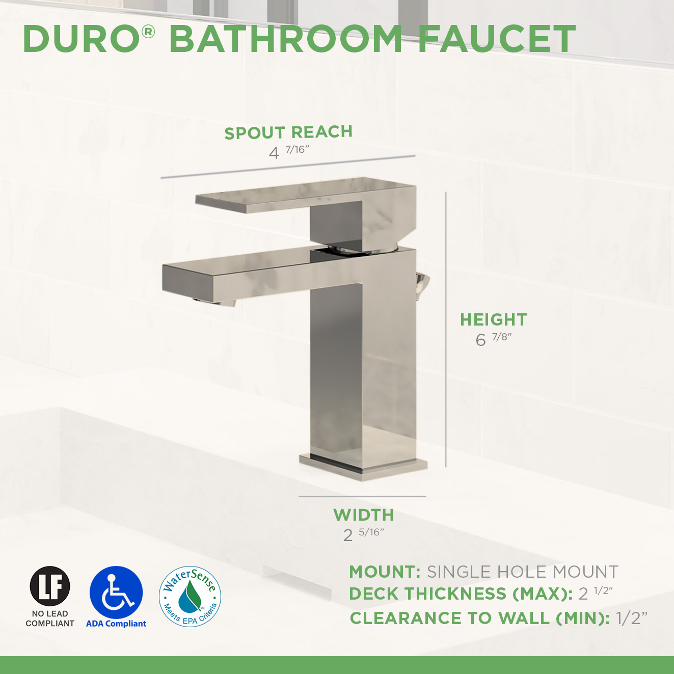 The bold angular design of the Duro Collection reflects the concept of form and function as one ideal. The precise rectangular shapes present a clean, minimalist feel for any contemporary bathroom.