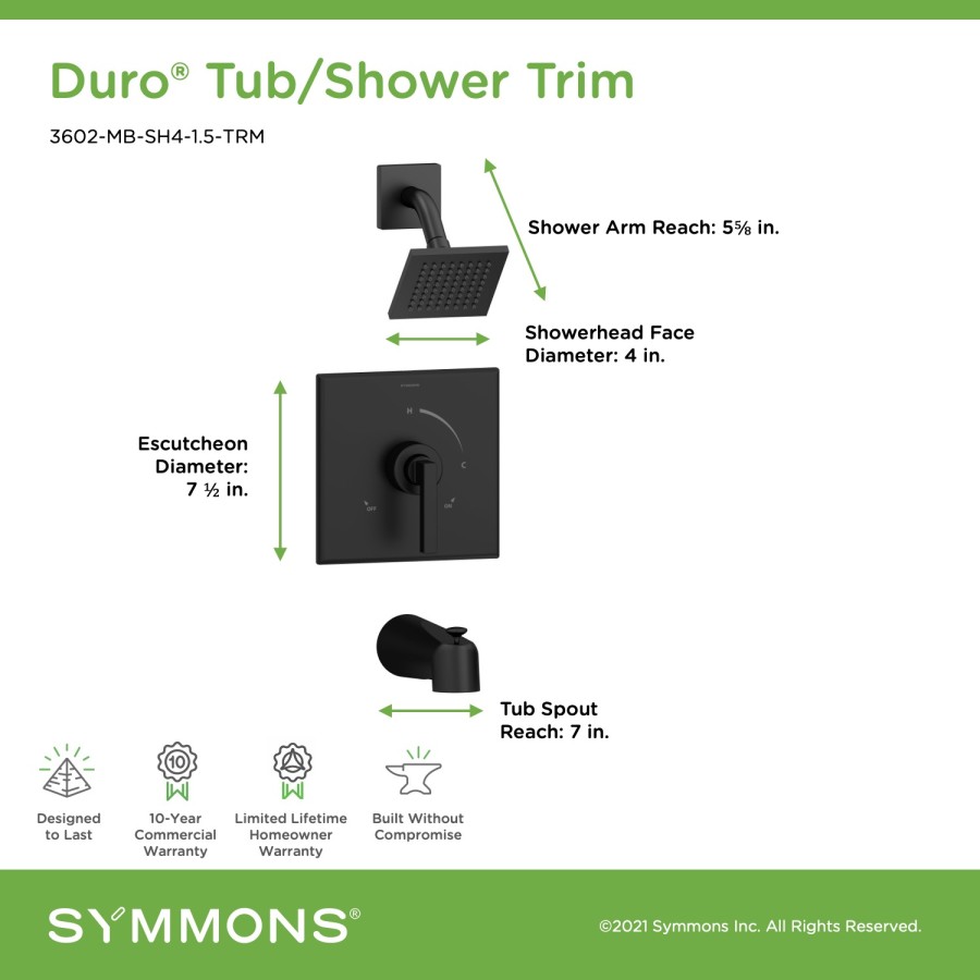 • Backed by Symmons' Limited Lifetime Homeowner Warranty / 10 Year Commercial Warranty