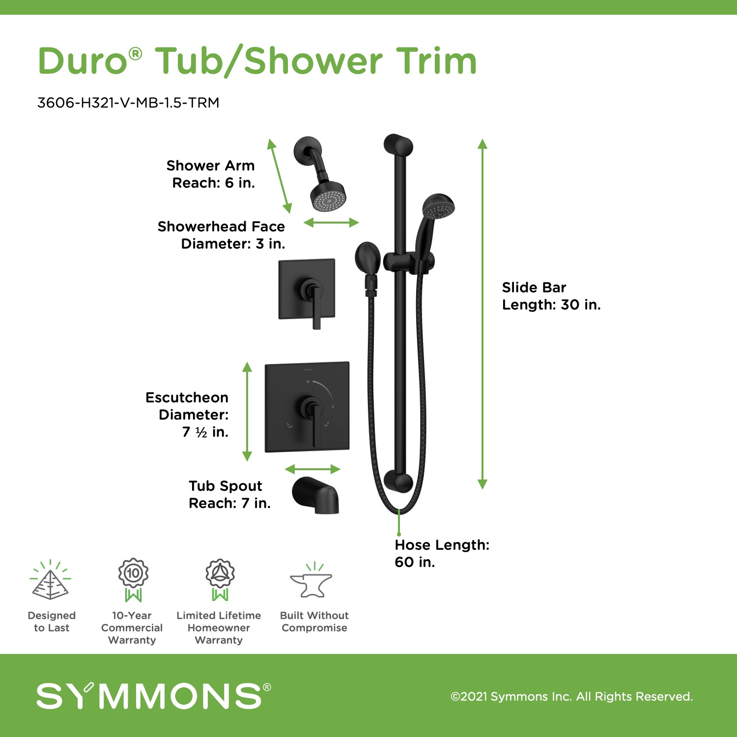 • Backed by Symmons' Limited Lifetime Homeowner Warranty / 10 Year Commercial Warranty