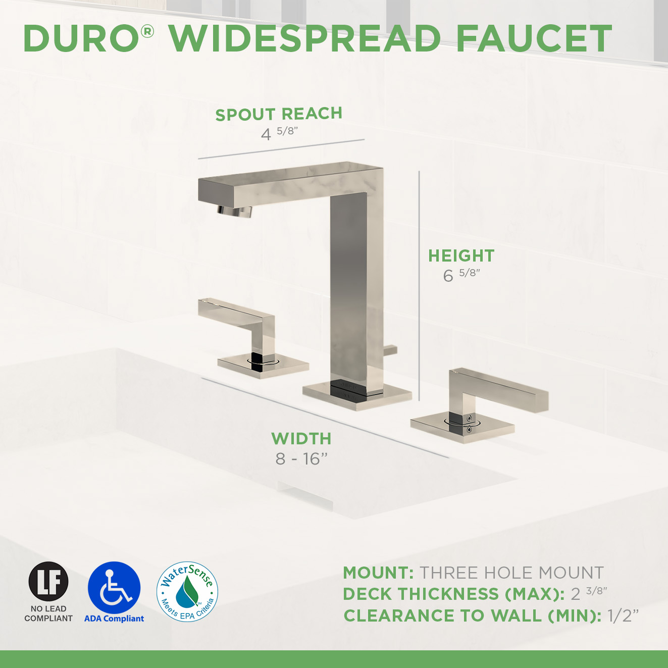 The bold angular design of the Duro Collection reflects the concept of form and function as one ideal. The precise rectangular shapes present a clean, minimalist feel for any contemporary bathroom.