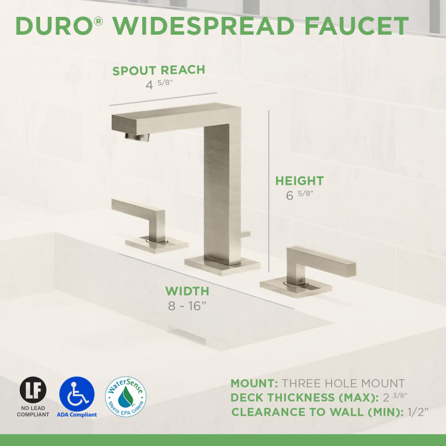 The bold angular design of the Duro Collection reflects the concept of form and function as one ideal. The precise rectangular shapes present a clean, minimalist feel for any contemporary bathroom.