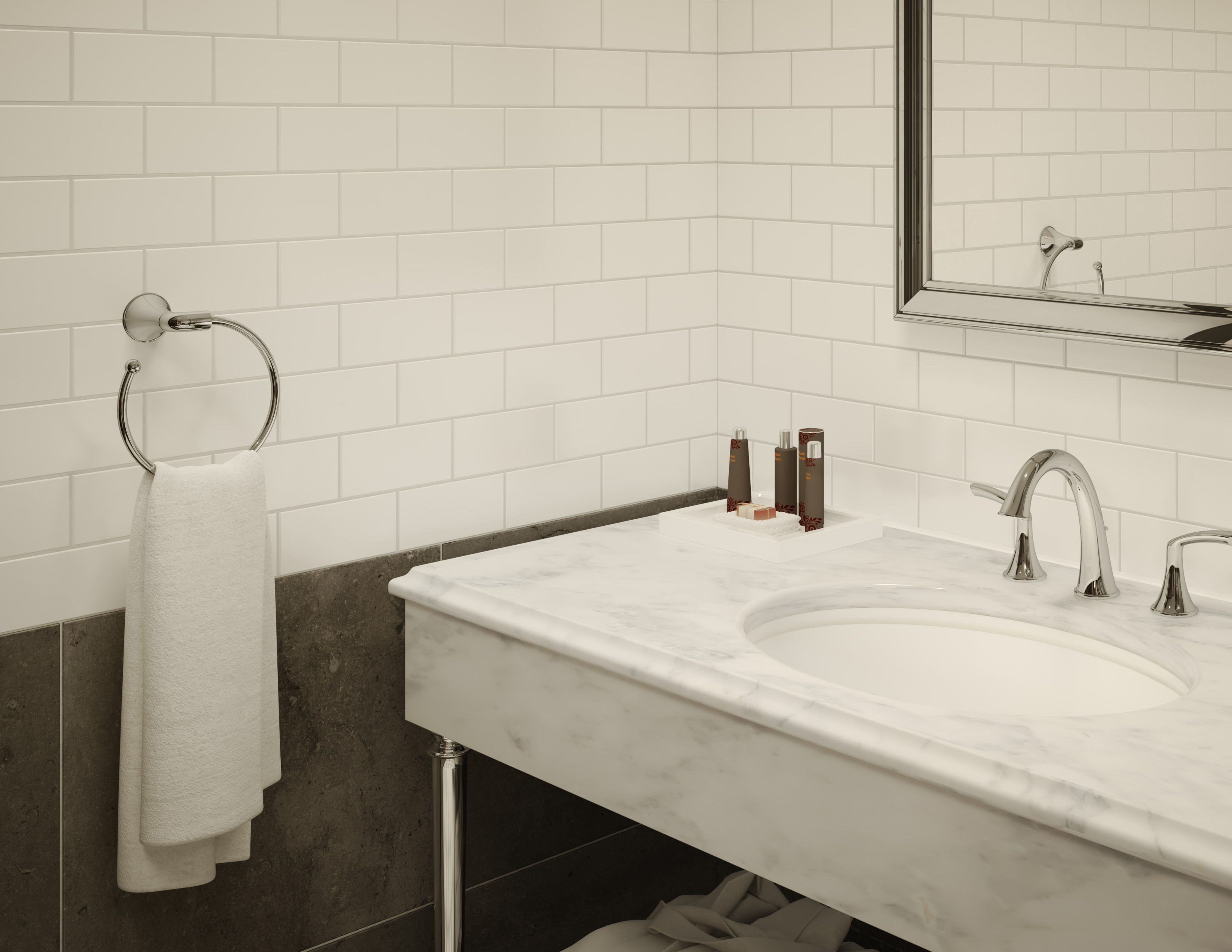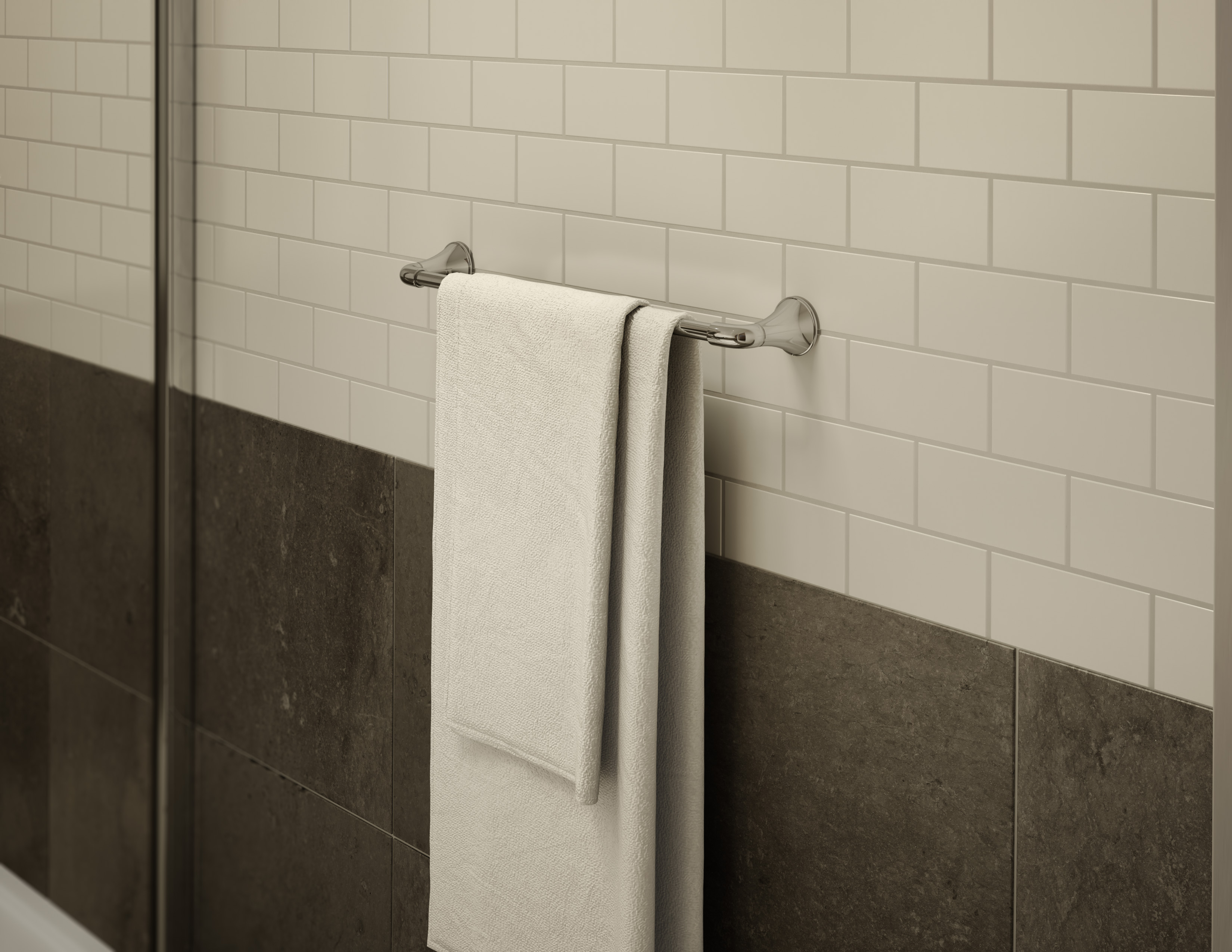 The sleek form and simple lines of the Symmons Elm Collection can be a subtle addition, or choose a bold finish to make it the focal point of any bathroom design.