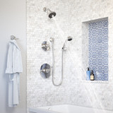 The sleek form and simple lines of the Symmons Elm Collection can be a subtle addition, or choose a bold finish to make it the focal point of any bathroom design.
