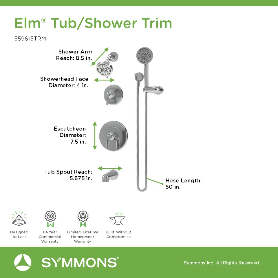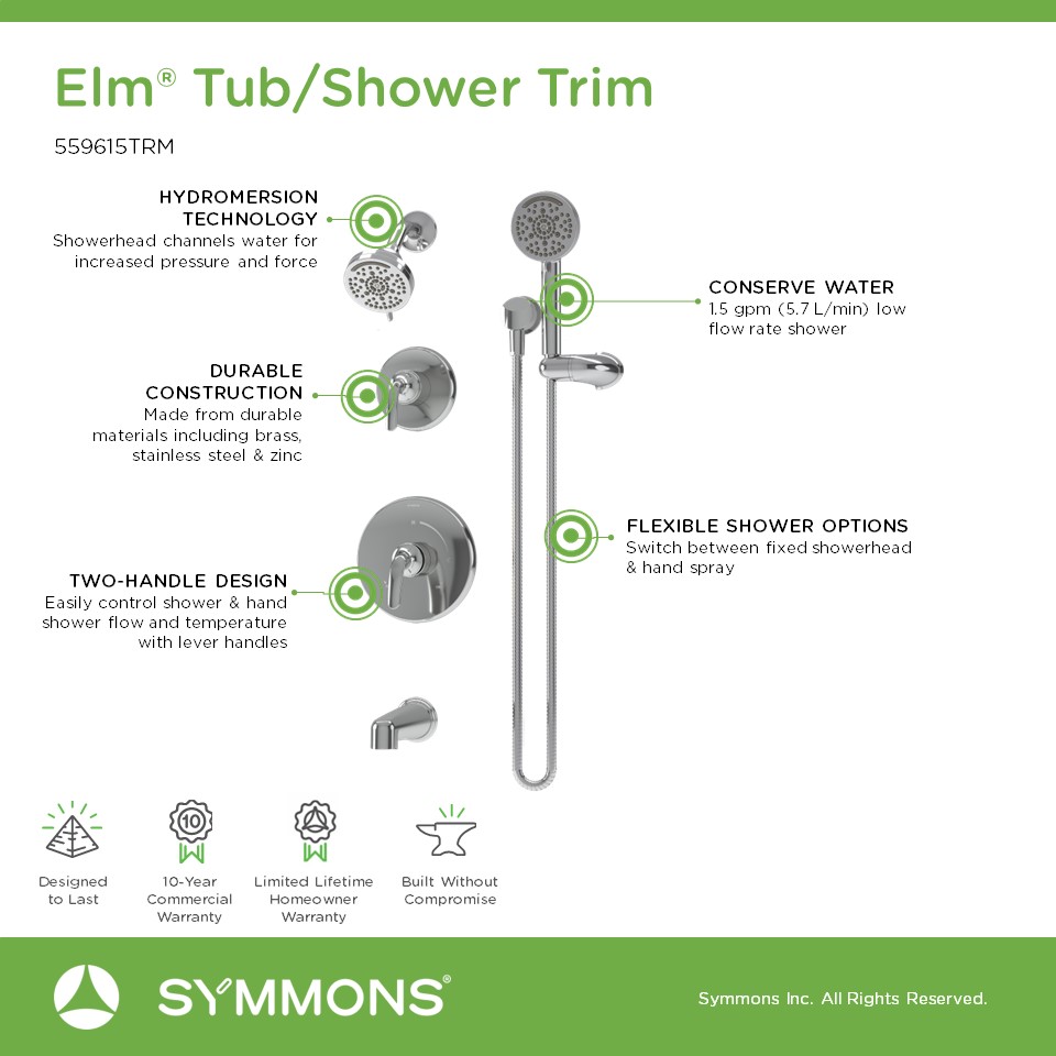• 26 series Symmons Temptrol valve and 3DIVBODYSRT three-function diverter valve required (Not included)