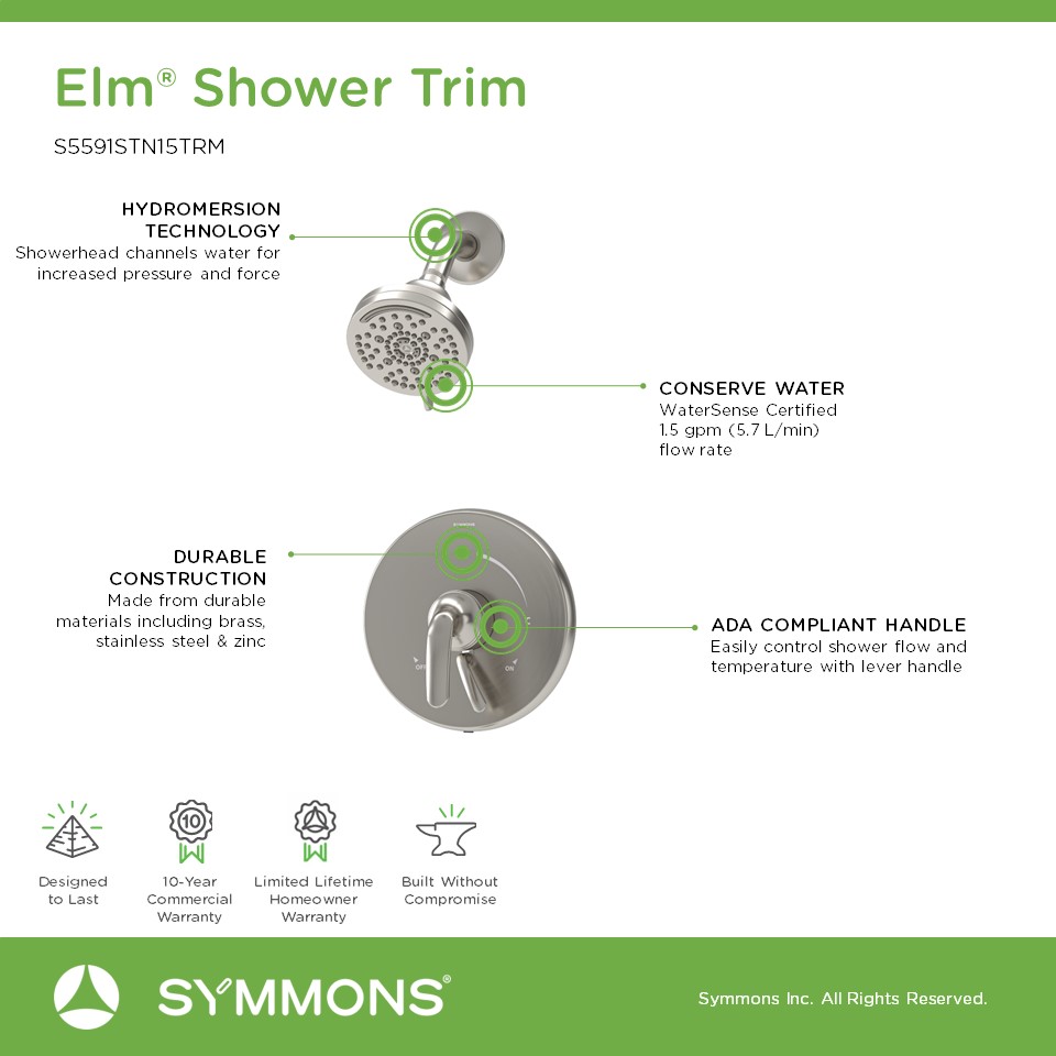 The sleek form and simple lines of the Symmons Elm Collection can be a subtle addition, or choose a bold finish to make it the focal point of any bathroom design.