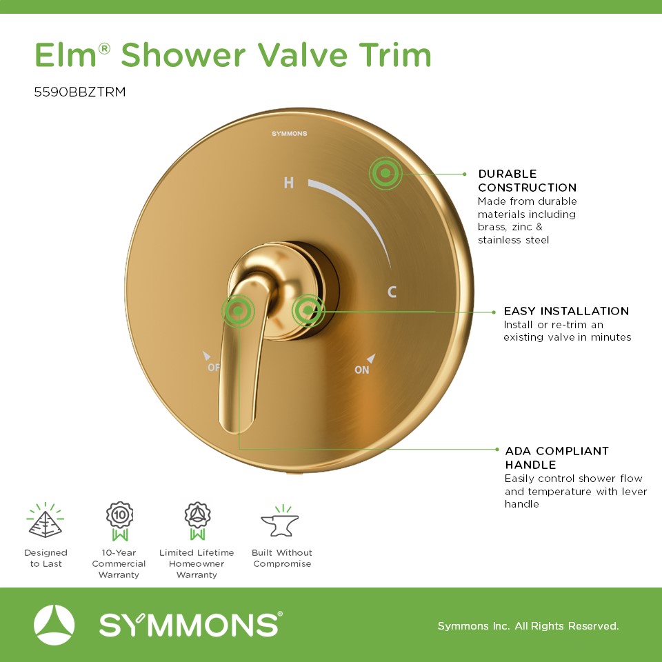 The sleek form and simple lines of the Symmons Elm Collection can be a subtle addition, or choose a bold finish to make it the focal point of any bathroom design.