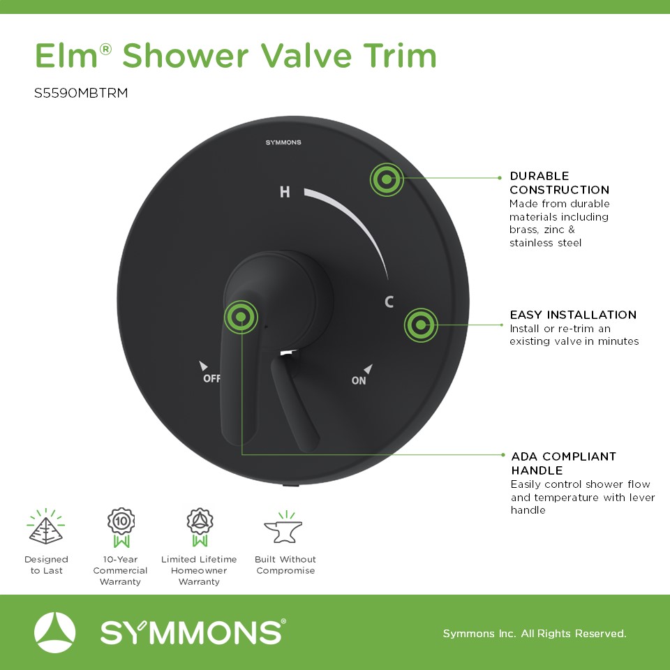 The sleek form and simple lines of the Symmons Elm Collection can be a subtle addition, or choose a bold finish to make it the focal point of any bathroom design.