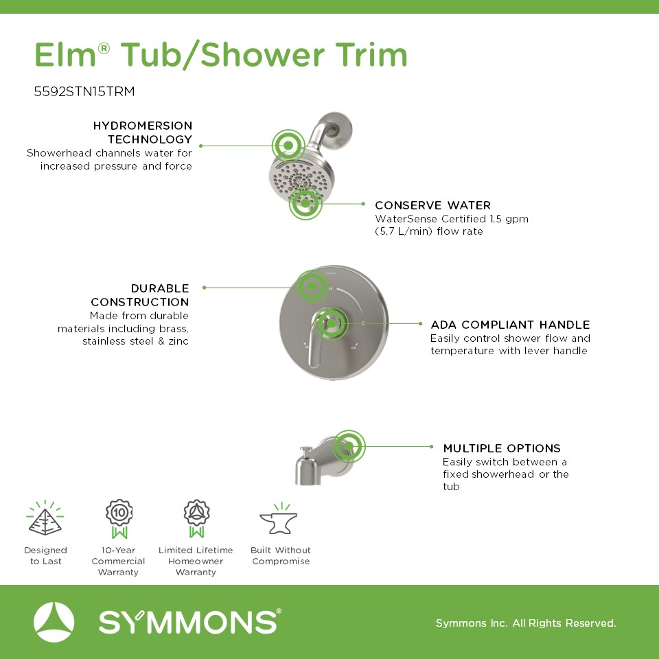 The sleek form and simple lines of the Symmons Elm Collection can be a subtle addition, or choose a bold finish to make it the focal point of any bathroom design.