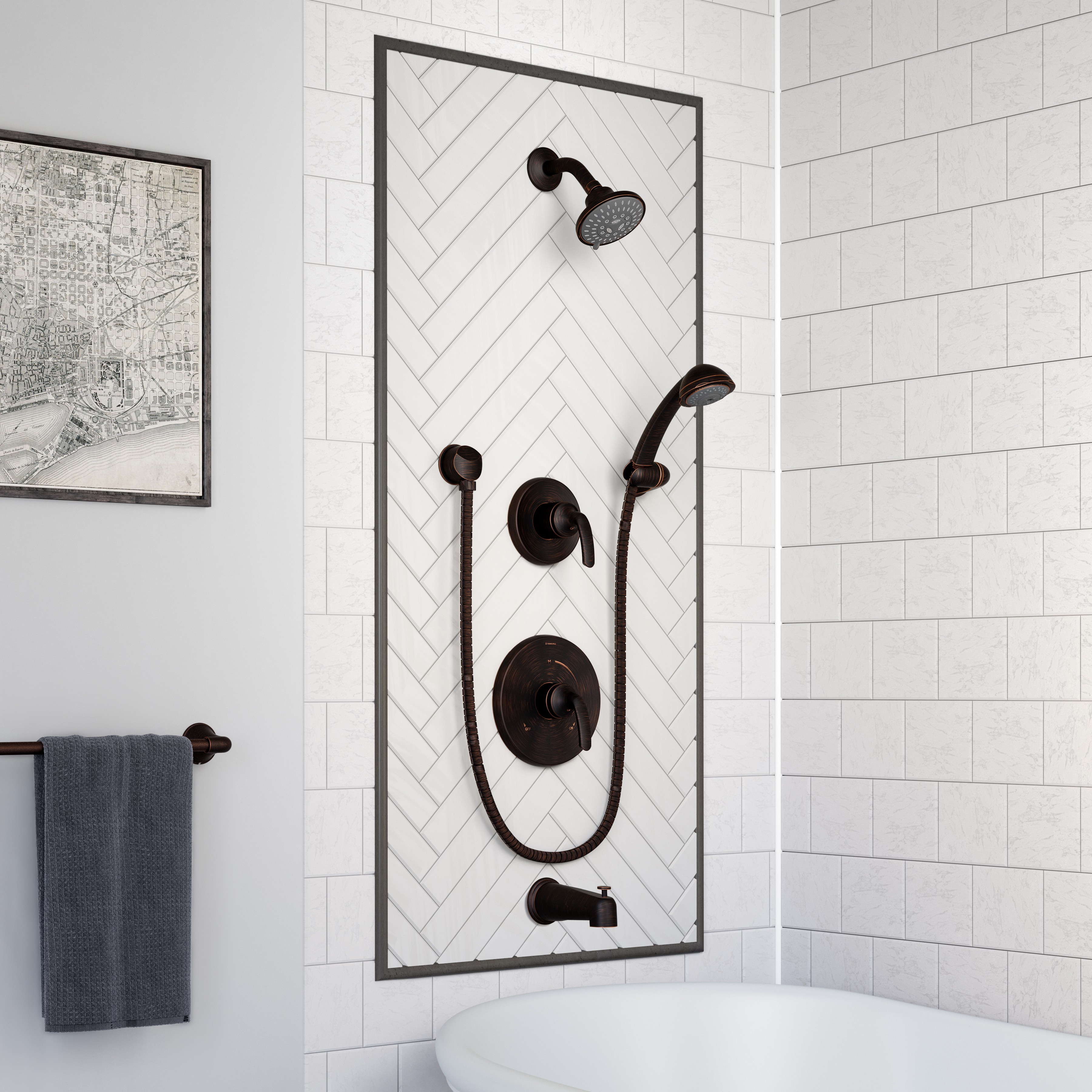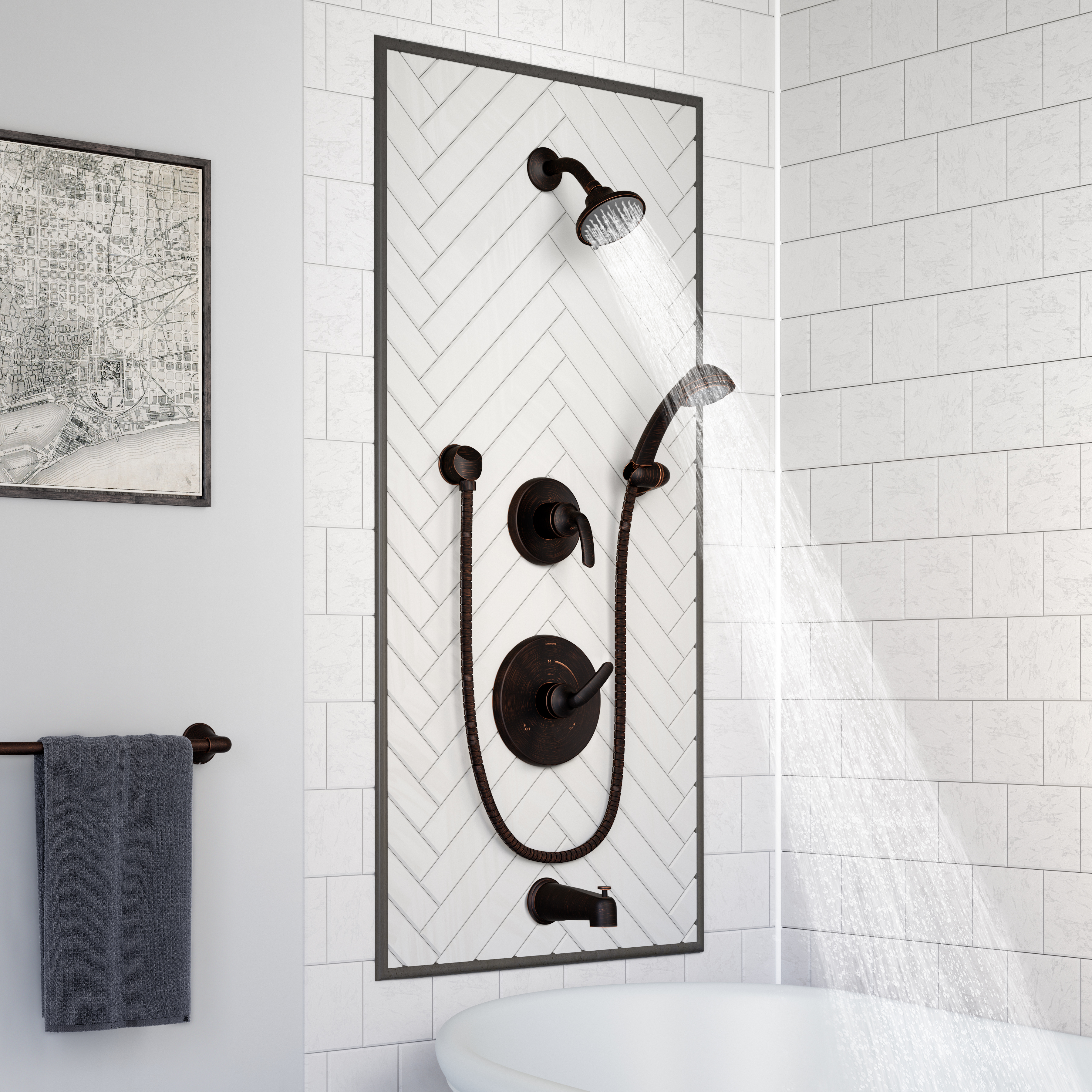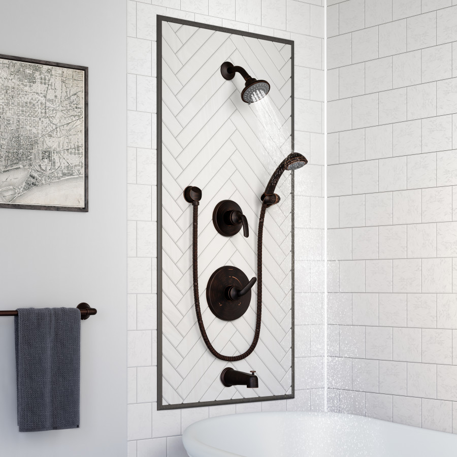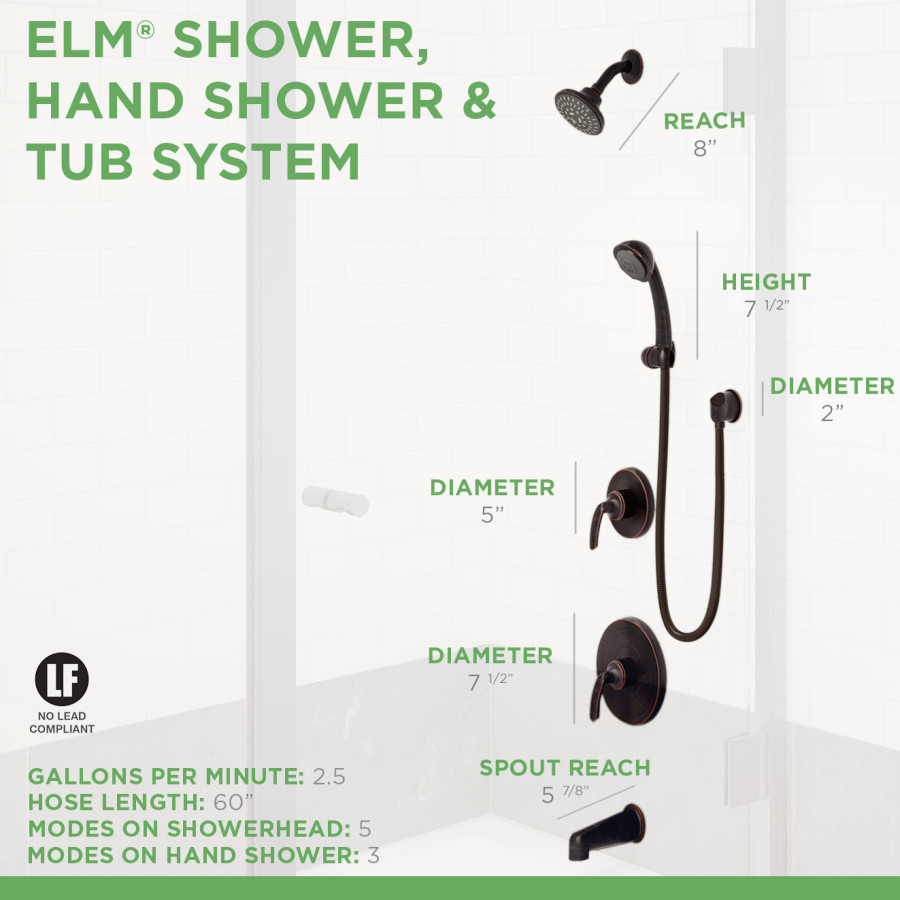 • Elm tub/shower system with hand shower and lever handle