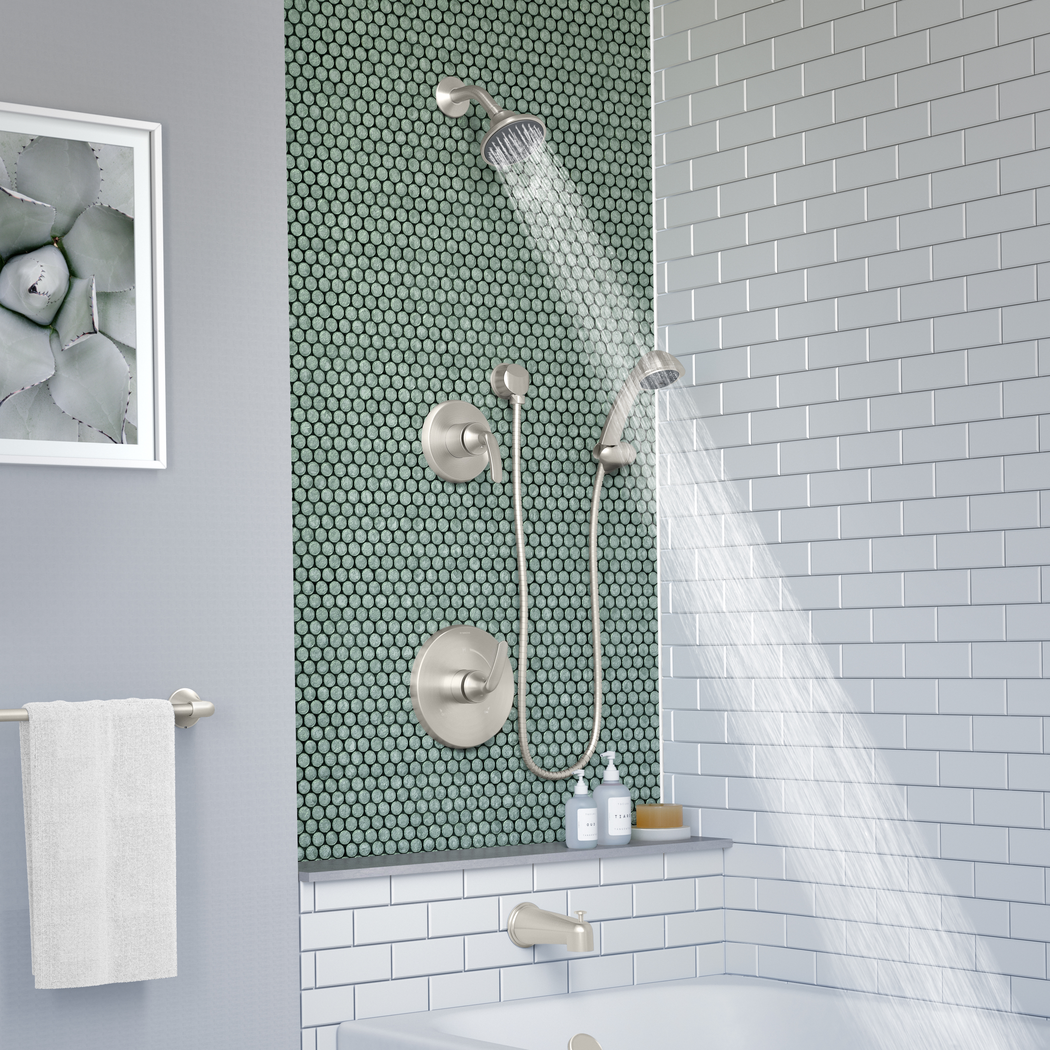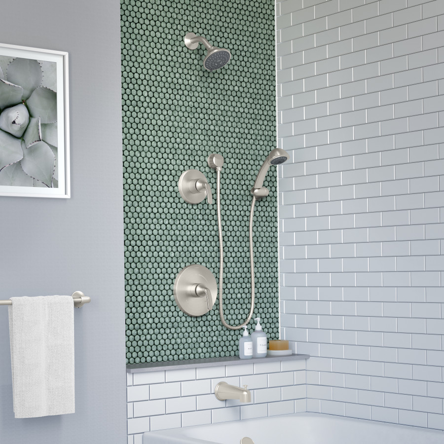 The sleek form and simple lines of the Symmons Elm Collection can be a subtle addition, or choose a bold finish to make it the focal point of any bathroom design.