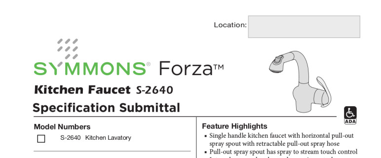 The Forza kitchen faucet combines sleek, sweeping lines with effortless functionality and renowned Symmons durability. The Forza features single-handle operation, a long-lasting ceramic cartridge, and a horizontal pull-out spray head with one-touch control.