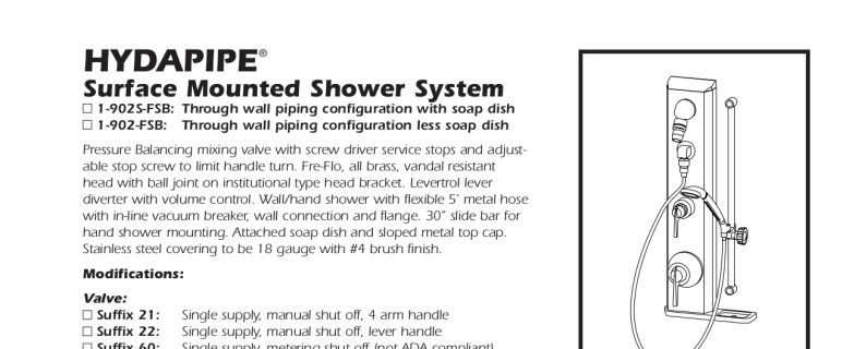 • Hydapipe surface mounted shower/hand shower system