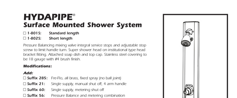 The reliability of Symmons pressure-balanced, anti-scald valves combined with the durability of 18-gauge stainless steel make HydaPipe shower units the trusted choice for correctional, educational, industrial, institutional, and public-use installations. Order standard HydaPipe configurations or custom-build a design to meet the specific needs of any construction project.