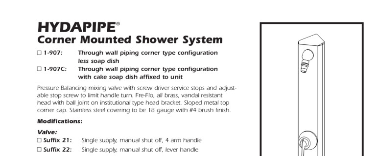 • Hydapipe surface mounted corner shower system