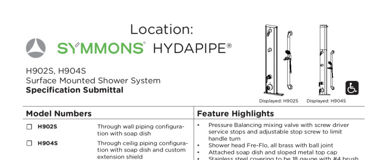 The reliability of Symmons pressure-balanced, anti-scald valves combined with the durability of 18-gauge stainless steel make HydaPipe shower units the trusted choice for correctional, educational, industrial, institutional, and public-use installations. Order standard HydaPipe configurations or custom-build a design to meet the specific needs of any construction project.