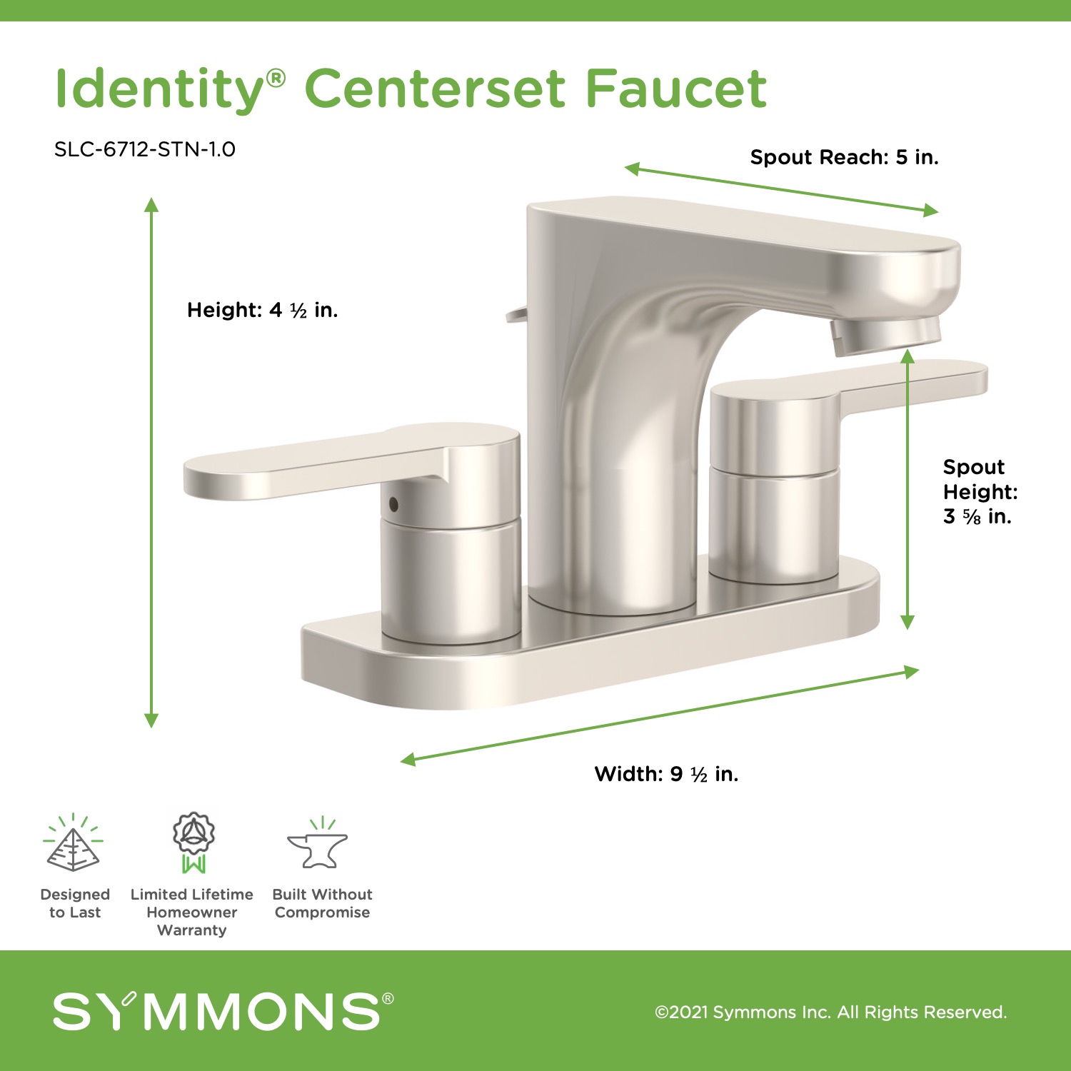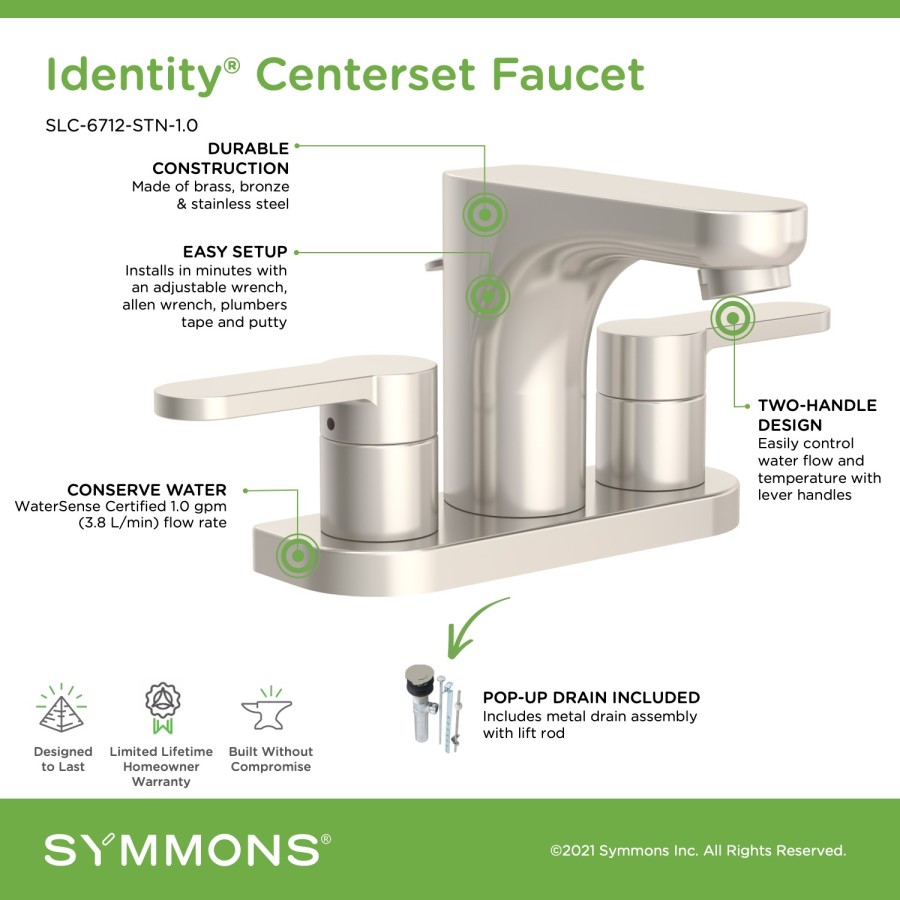 • Identity two handle centerset faucet