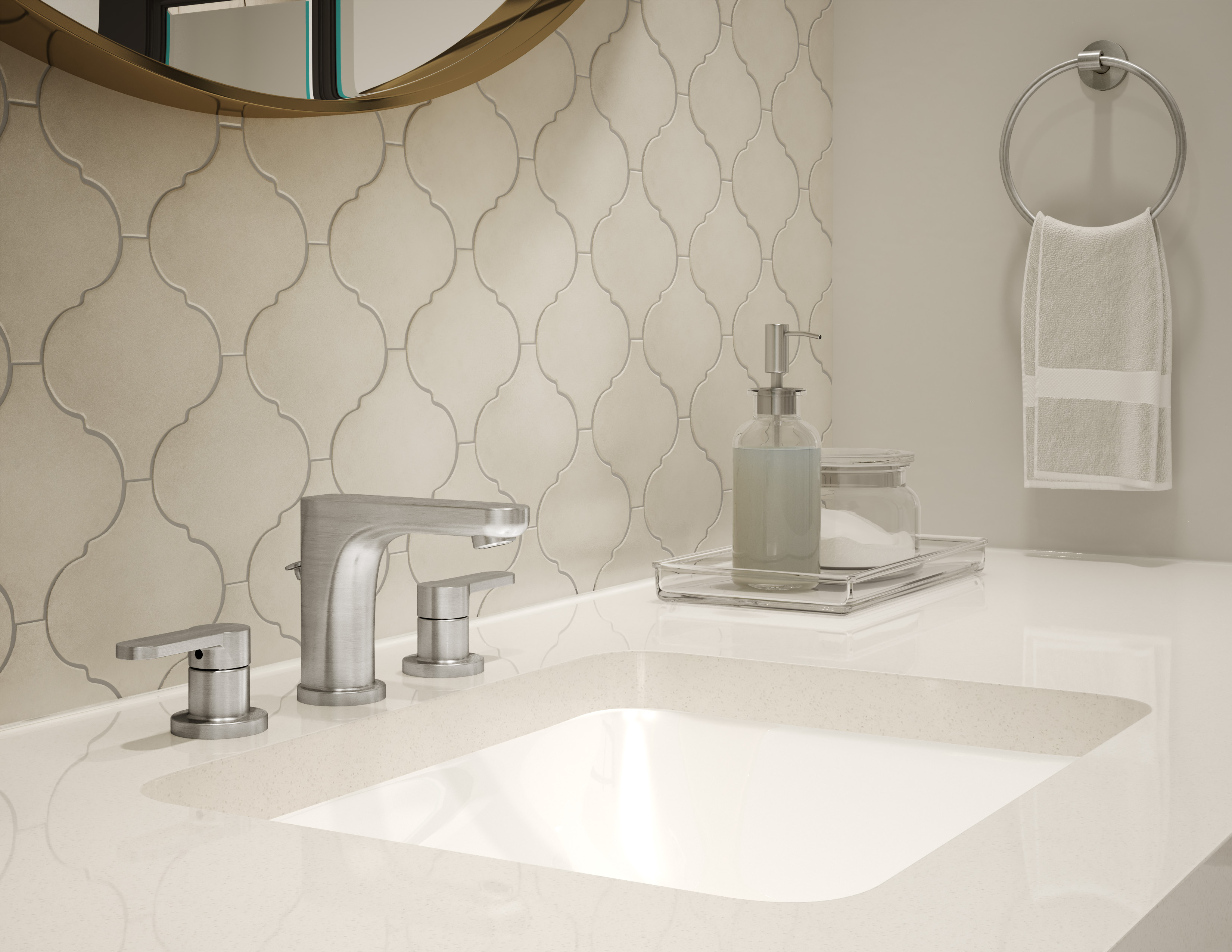 The individuality of recent customer projects inspired the Symmons Identity Collection’s balance of sleek curves and defined edges with stylish simplicity. Its distinct contours bring a modern touch with hints of retro Space Age design.