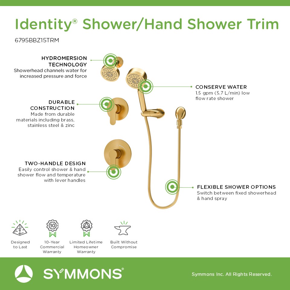 The individuality of recent customer projects inspired the Symmons Identity Collection’s balance of sleek curves and defined edges with stylish simplicity. Its distinct contours bring a modern touch with hints of retro Space Age design.