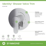 The individuality of recent customer projects inspired the Symmons Identity Collection’s balance of sleek curves and defined edges with stylish simplicity. Its distinct contours bring a modern touch with hints of retro Space Age design.