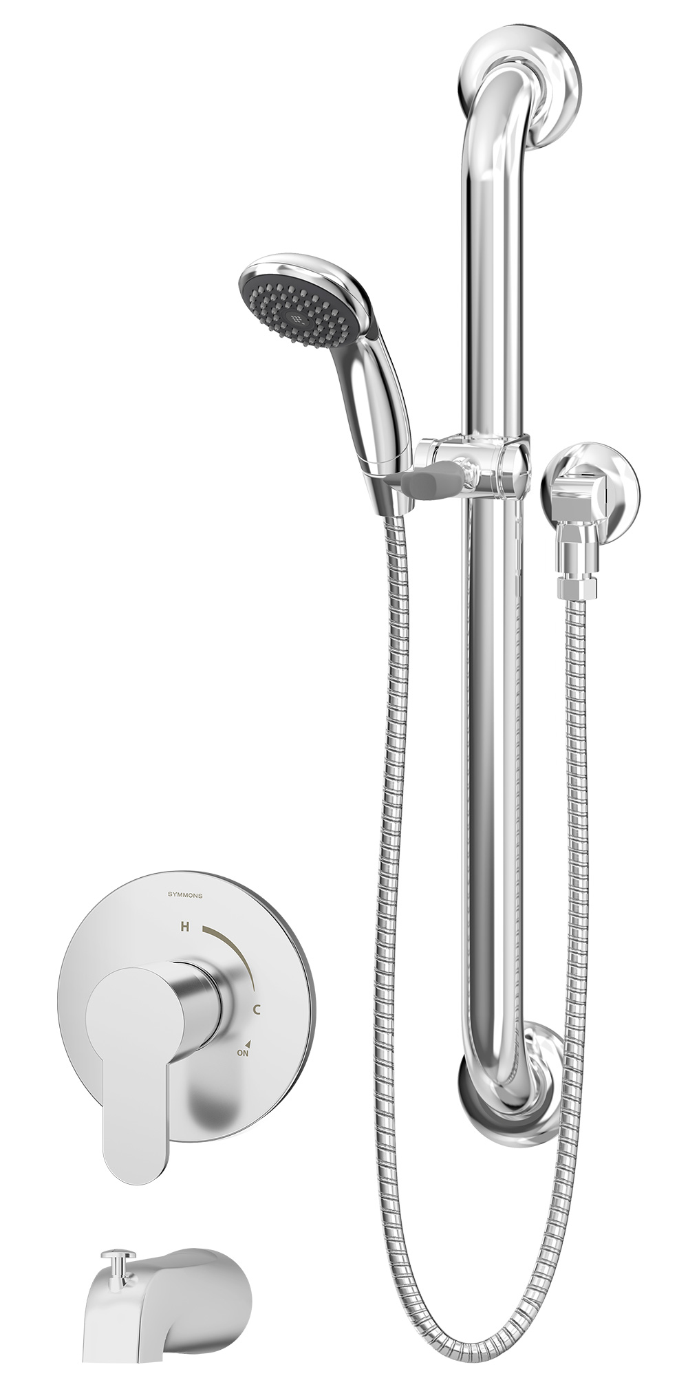 The individuality of recent customer projects inspired the Symmons Identity Collection’s balance of sleek curves and defined edges with stylish simplicity. Its distinct contours bring a modern touch with hints of retro Space Age design.